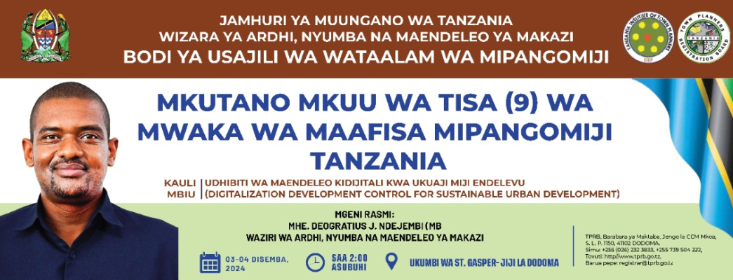 - UTARATIBU WA KUSAJILIWA KAMA AFISA MIPANGOMIJI ALIYEHITIMU (GRADUATE TOWN PLANNER) PAMOJA NA AFISA MIPANGOMIJI MSAIDIZI (TECHNICIAN TOWN PLANNER)